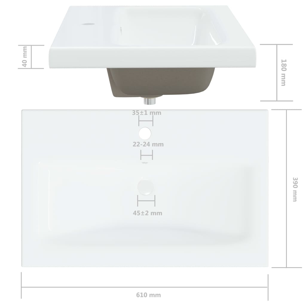 Description: This built-in basin with tap is a chic and timeless addition to any bathroom, washroom, dressing room, or guest toilet. The basin serves both a practical and aesthetic function. Made of ceramic, it is easy to clean. The glazed surface gives the basin a modern yet elegant look. A water heater connection is required for hot water. Children should be supervised to ensure they do not play with the appliance. Keep children away from the installation area. Caution! Caution! Properties: