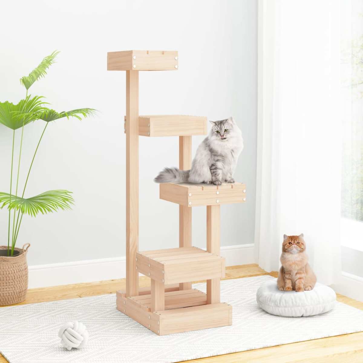 Description: This practical cat tree will provide your cats with endless fun! Practical cat tower: This multi-level cat furniture features four platforms, offering your cats the perfect place to climb, sit, and relax. Durable material: Solid pine wood is a beautiful natural material. Note: Each product comes with assembly instructions included in the packaging for easy assembly. Properties: