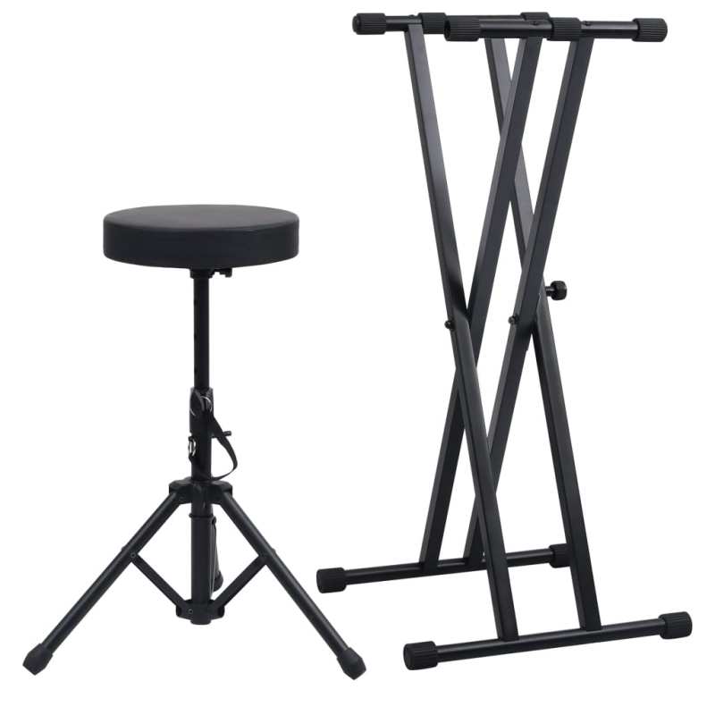 Description: This adjustable keyboard stand and stool is the ideal companion for your keyboard performances and practice. The keyboard stand is made of robust steel, making it very durable and stable. The padded, round stool offers ultimate comfort while playing. With multiple adjustable working heights, both the stand and stool can be easily adjusted to the desired height for players of different statures. Thanks to their foldable design, the stand and stool are easy to transport and store when traveling. Delivery includes one stand and one stool. Properties: