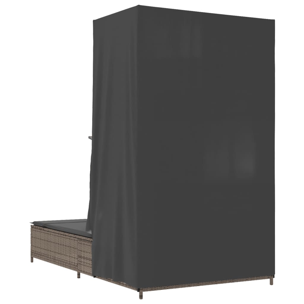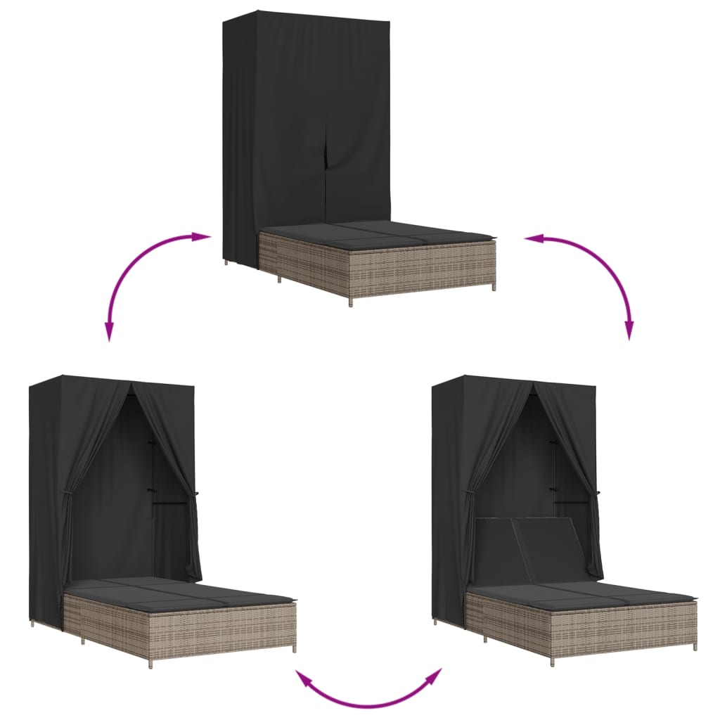 Double Sun Lounger with Canopy and Curtains, Poly Rattan