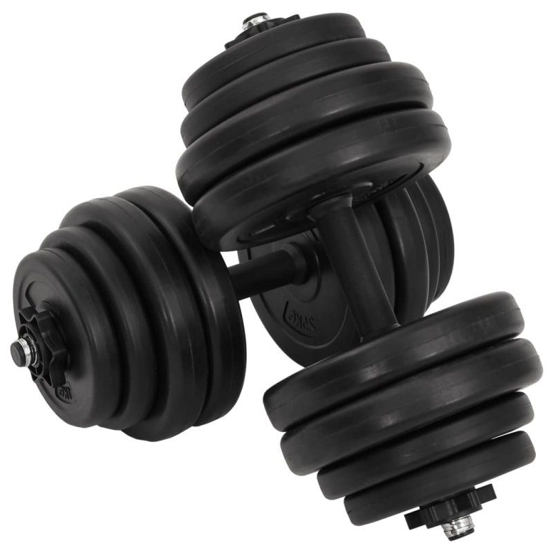 Description: This ergonomic dumbbell set has a total weight of 30 kg (2 x 15 kg). The dumbbells have non-slip, plastic-coated bars, so you don't have to worry about them slipping and falling. The bars are approximately 14.5 cm long. You'll also no longer be bothered by annoying clanging noises from the weight plates. Its total weight is approximately 20 kg. Thoughtful design: The weight is clearly embossed on each weight plate for quick and easy identification. Properties: