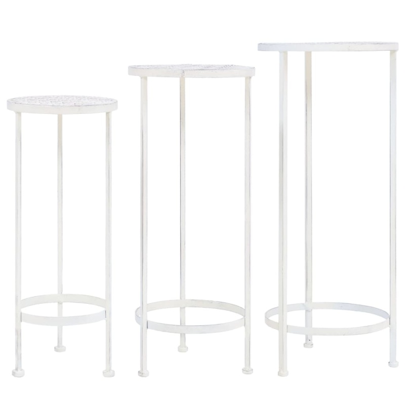 Flower Stand Set of 3, Vintage Style, Metal, White
