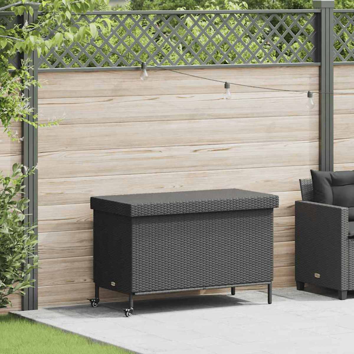 Description: This storage chest is ideal for storing cushions, pads, blankets, and other items in the garden or on the patio. Durable material: PE rattan, also known as poly rattan, is a robust, easy-care synthetic material that looks like natural rattan. It is lightweight and easy to clean. Good to know: We recommend protecting your garden furniture with a waterproof cover to maintain its attractive appearance for a long time. The inner bag can be securely attached to the seat with Velcro fasteners, ensuring stability and preventing movement. Properties:
