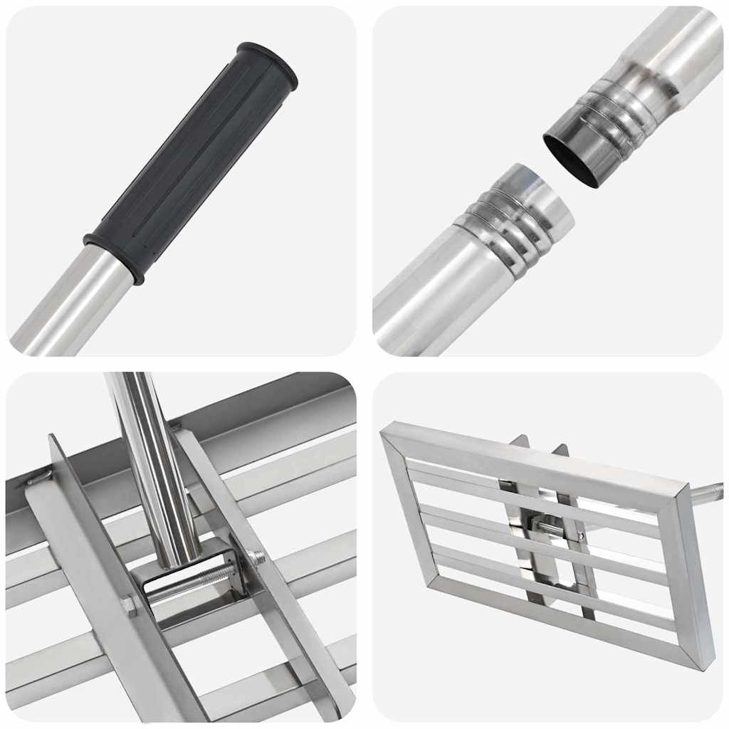This multi-functional garden rake is an ingenious tool for gardeners who value style and versatility. With its modern look and practical design, it's perfect whether you're in the garden or on the patio. The elegant brushed finish gives it a chic appearance that complements its lightweight yet sturdy construction. Water-resistant: Don't worry about the weather! This garden rake withstands rain and sun. Thanks to its durable materials, you won't need to replace it often. Versatile: It can do almost anything! From raking leaves to smoothing soil, it's useful for a multitude of tasks. Its user-friendly design makes long hours in the garden a breeze. Plus, the smooth surface ensures effortless handling. Adjustable: The rotating function allows you to turn it in any direction. Manual adjustments give you complete control.