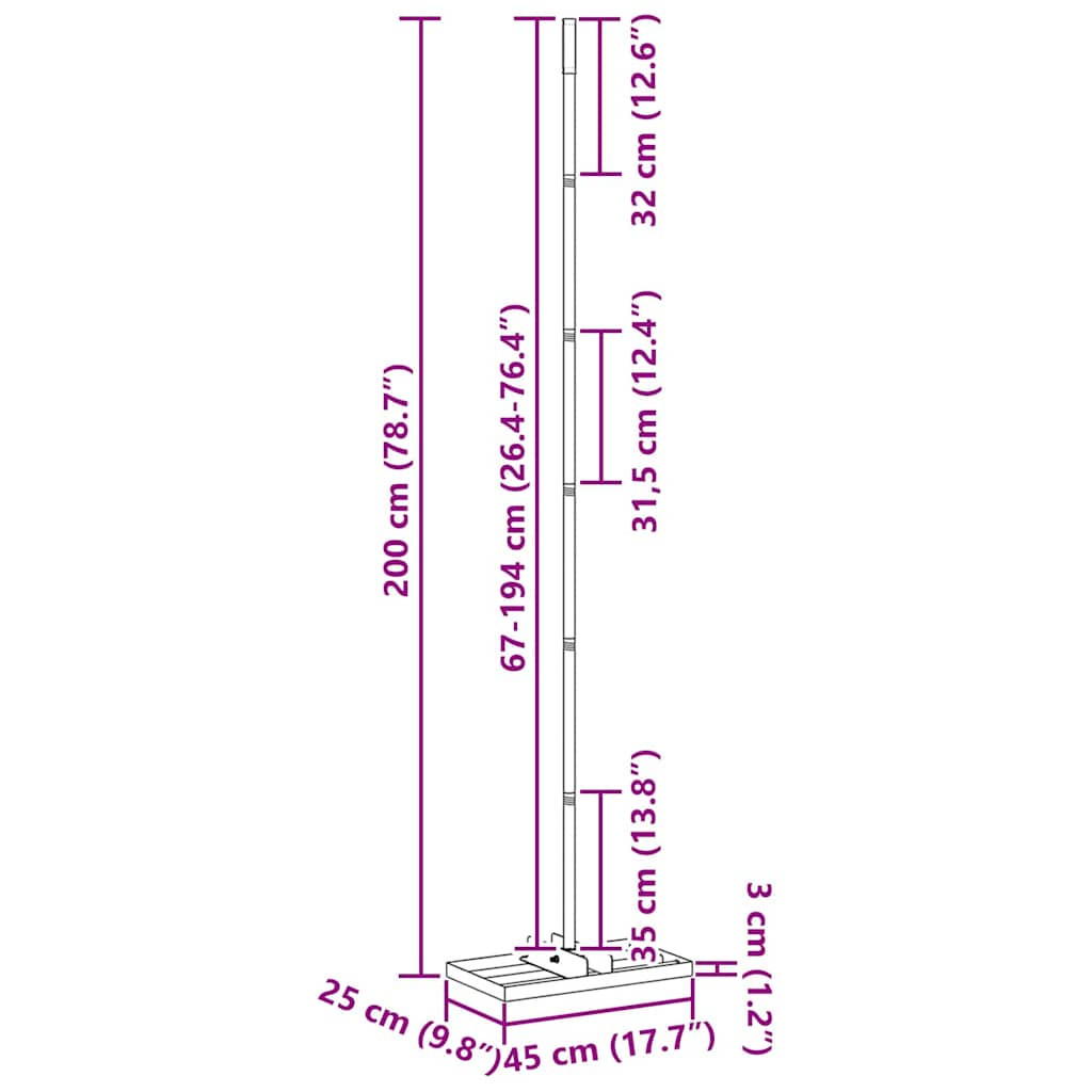 Surface: Brushed Overall dimensions: 45 x 25 x 200 cm (L x W x H) Weight: 2.41 kg, 2.62 kg Indoor/outdoor use: Indoor & outdoor Scope of delivery: Number of items: 1 Assembly required: Yes