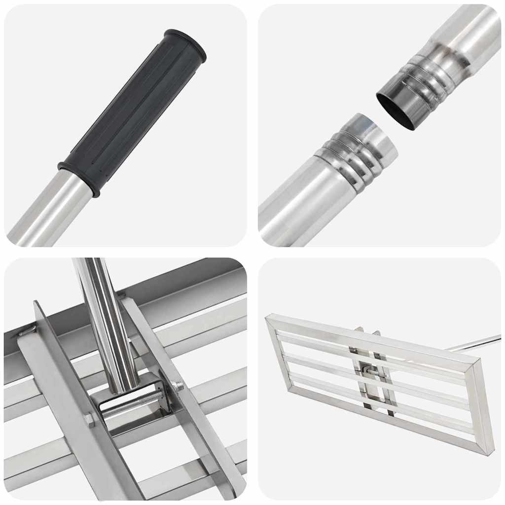 Description: The modern rectangular garden rake embodies simplicity and efficiency. With its stylish design and clean lines, it's perfect for your garden or patio. Water-repellent material: This rake is made of waterproof materials, so it can handle all your gardening tasks in any weather. Less fatigue means you can enjoy more time in the garden! Robust construction: Don't be fooled by its weight; this rake is extremely stable. It's strong enough to handle heavy-duty work without falling apart. Brushed finish: The brushed surface not only looks stylish but also provides a better grip. It makes your gardening tools look great while remaining practical. Ergonomic for outdoor use: This rake offers a high level of comfort when working outdoors. Properties: Surface: Brushed Overall dimensions: 75 x 25 x 200 cm (L x W x H) Weight: 2.88 kg, 3.62 kg Indoor/outdoor use: Outdoor use only Number of items: 1 Assembly required: Yes