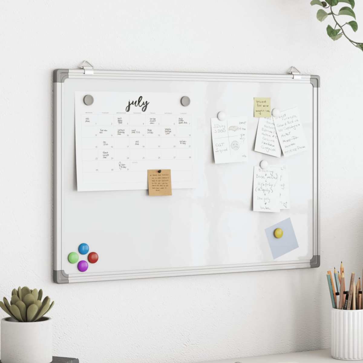 Description: This magnetic whiteboard is an ideal solution for creating a space in your home or office where you can write, draw, or display photos. It is suitable for schools, conference rooms, offices, and apartments. Properties: