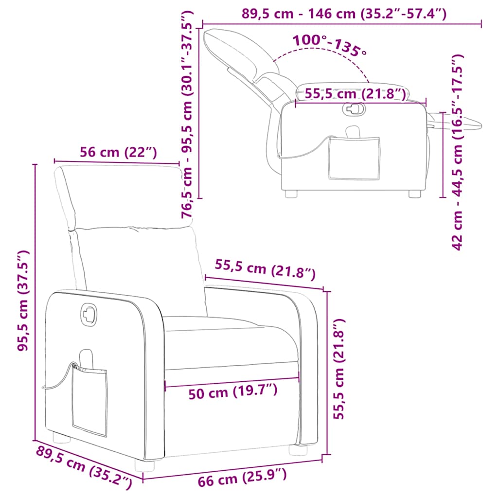 Description: Lean back and relax in this incredibly comfortable massage chair! Manual reclining function: This recliner can be adjusted using the handle on the right side. This allows you to manually adjust the footrest and backrest to any desired position for maximum comfort. The backrest reclines to a maximum of 135 degrees. The included remote control also allows you to select from various massage programs. The faux leather is an extremely durable material. It is stain-resistant and easy to clean with a damp cloth. This TV recliner is both comfortable and durable. Maximum weight capacity: 110 kg per seat. This product operates on 5V DC power, but the certified 5V USB power source is not included. Properties: