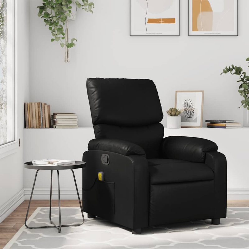 Description: Sit back and relax in this exceptionally comfortable massage chair! Manual reclining function: This recliner features a handle on the right side. This function allows for a maximum recline of 135 degrees. Additionally, the backrest can be quickly returned to its upright position by simply pulling the handle. Vibration function: The 6 massage points provide a more targeted massage. You can select different massage programs using the included remote control. The massage function is powered via USB; however, a certified 5V USB power adapter is not included. Faux leather is an extremely durable material. It is stain-resistant and therefore easy to clean with a damp cloth. This recliner is comfortable and long-lasting. Maximum weight capacity: 110 kg per seat. Higher voltage can lead to overheating, which may damage the device and pose a risk of overheating and fire. Properties:
