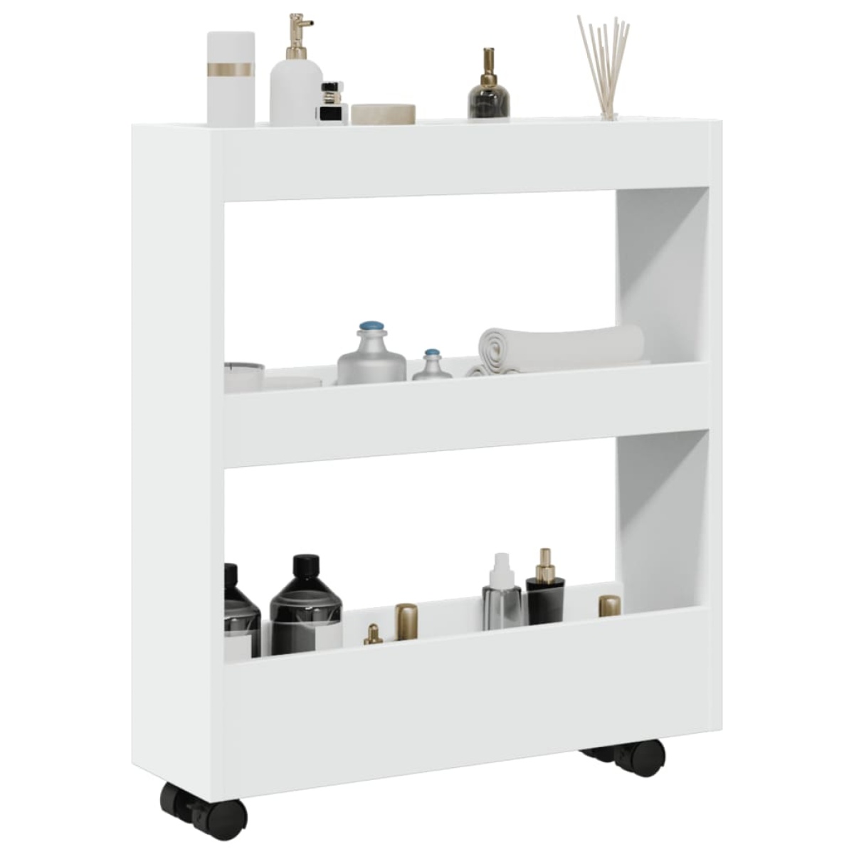 Narrow Storage Trolley 3 Shelves Wood Material Storage Trolley