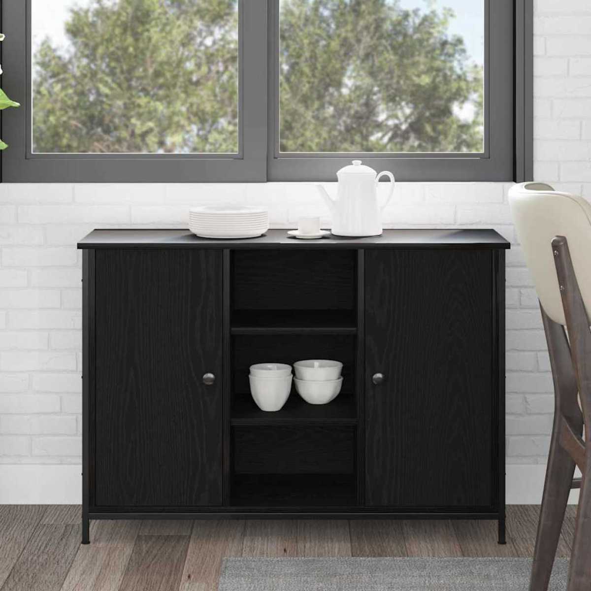 Description: This stylish, modern, rectangular sideboard not only looks great but is also incredibly practical and belongs in every dining room or living room. Made from engineered wood, this sideboard is constructed from high-quality engineered wood known for its durability. It also gives the piece a modern look that complements current interior design styles. The matte finish prevents glare, making it perfect for bright rooms. The sideboard offers various storage options, including shelves and doors, providing ample space for everything from plates to decorative items. The sturdy steel legs ensure stability. If you follow the instructions, you'll assemble it correctly and have a piece of furniture that will last for years to come. Properties: