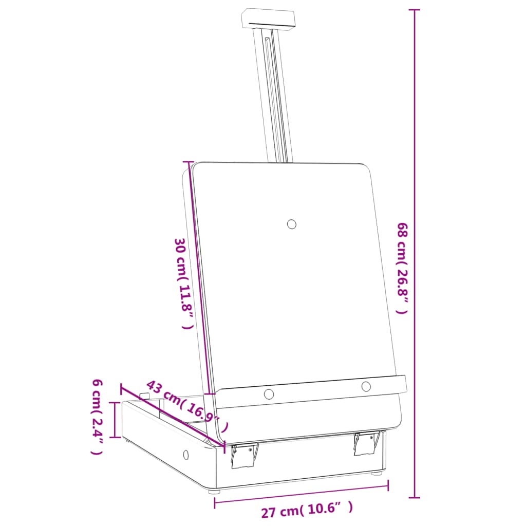 Description: This wooden table easel is a great helper for painting and is perfect for artists, students, professionals, and amateurs! Adjustable height and angle: The height can be adjusted by turning the screw. This makes the easel suitable for canvases up to 54.5 cm high. You can also adjust the angle of the wooden easel for comfortable painting from different angles. Sturdy material: Solid pine wood is a beautiful natural material. Pine wood has a straight grain, and the knots give it its characteristic, rustic look. Made of solid pine wood, this easel is sturdy and stable. Storage space: This desk easel offers ample storage space to keep paints, brushes, markers, pencils, chalk, and other drawing supplies neatly organized and within easy reach. Lightweight and portable: This table easel is lightweight, easy to transport, and folds easily for storage when not in use. Properties:
