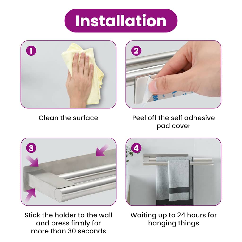 Description: This modern towel rack is a central element in any bathroom and blends seamlessly into contemporary styles characterized by simplicity and clean lines. Designed as a wall-mounted rack, it offers a practical solution for neatly organizing towels and enhancing the bathroom's aesthetic appeal. Easy installation requires only a screwdriver, simplifying the setup process for everyone. Care & Maintenance: Maintaining the towel rack is a breeze with simple care instructions. Properties:
