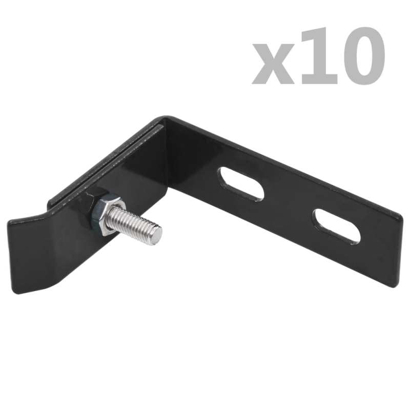 Description: Only a properly secured fence is a safe fence. These wall connectors allow you to easily and effectively fasten your double-wire fence! This practical wall connector set consists of a hot-dip galvanized front plate and back plate, as well as a stainless steel screw and nut, designed for long-lasting durability. Delivery includes 10 sets. Properties: