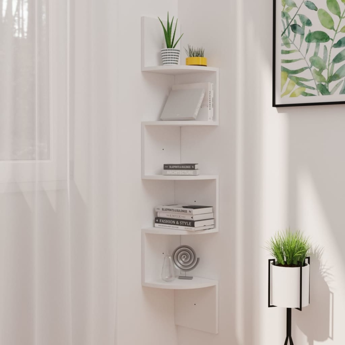 Description: This elegant corner wall shelf perfectly combines attractive design with practicality, making it an ideal choice for your living space. It offers ample storage and display space for various items and favorite decorations such as awards, books, collectibles, ornaments, and more. Properties: