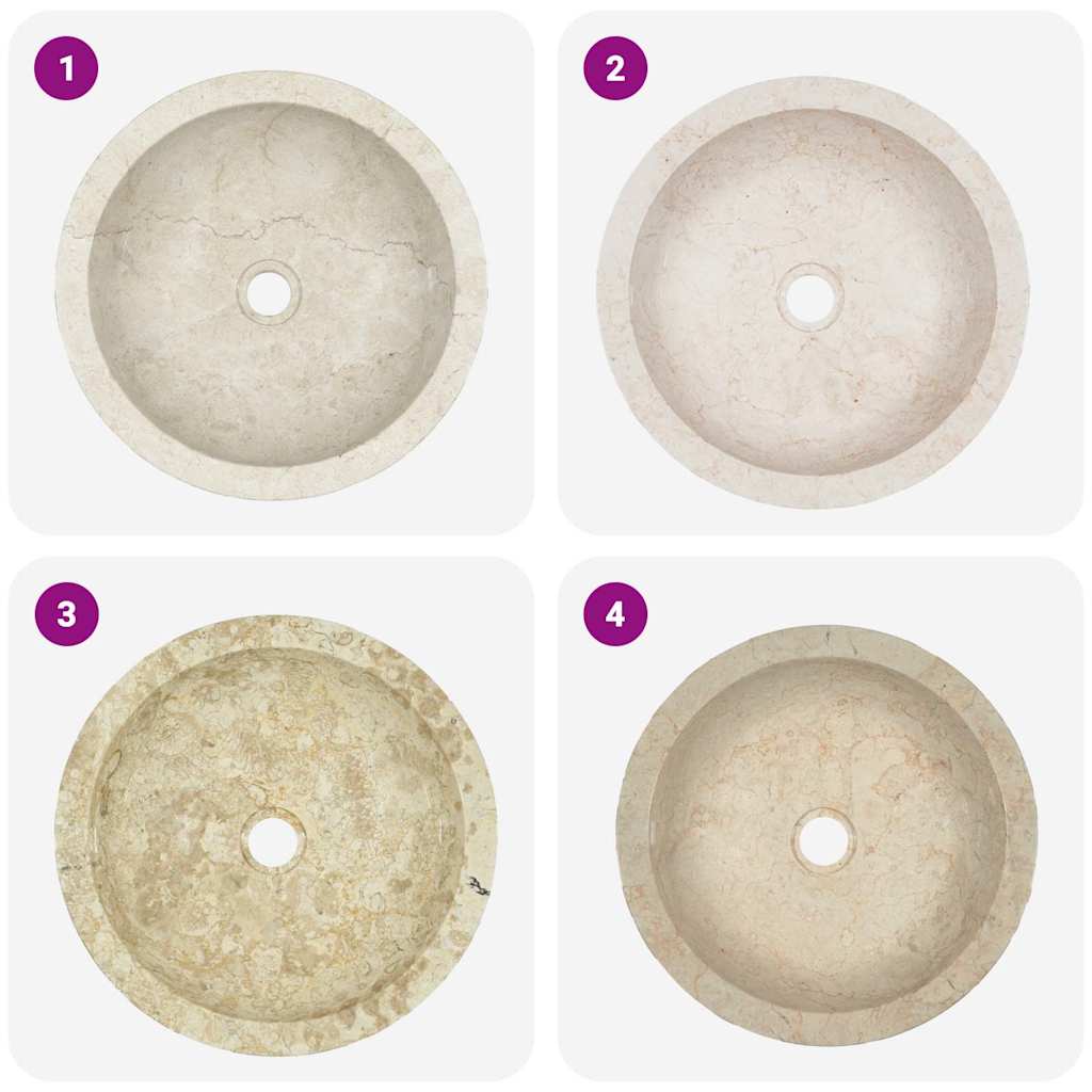 Description: This marble washbasin exudes modern charm and will be a real eye-catcher in your bathroom or powder room. This striking basin is not only user-friendly for everyday use but also a true decorative element for your living space. Entirely handcrafted from attractive marble with a smooth surface, the basin is extremely robust yet elegant. It blends perfectly with any interior design style. Furthermore, the washbasin is very easy to clean. Children should be supervised to ensure they do not play with the product. Keep children away from the installation area. Caution! Read the instructions carefully before use and keep them for future reference. Properties:
