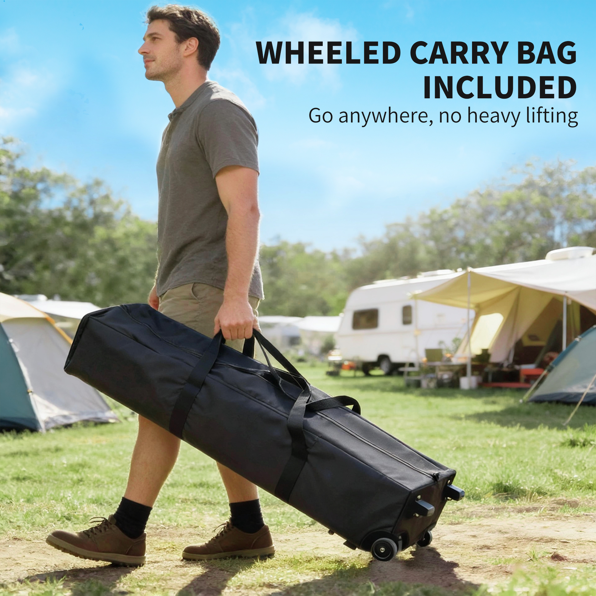 Create a cooler, and more welcoming gathering space with this 9.8 x 9.8 ft [BRAND NAME] pop up canopy tent, featuring a UPF30+ 210D Oxford canopy with silver coating. Its powder-coated frame with guy ropes, stakes, and sandbags keeps everything steady, while the intuitive pop-up design with a one-push central lock allows you to quickly set the right atmosphere for garden parties, picnics, or relaxed weekend get-togethers.