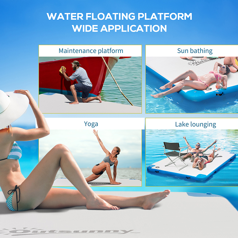 The inflatable dock from [BRAND NAME] is a best choose for you creat your own floating island with friends and family. It's made of thicken PVC brushed cloth and non-slip PU mat to secure your and others play on the water without worry about falling into the water. Build in anchor D-Rings allow you quick and easy secure it to the back of your boat, carry handles on each sides of the mat for easy carry and grips. This [BRAND NAME] water floating platform is the best mat you need for different activity.