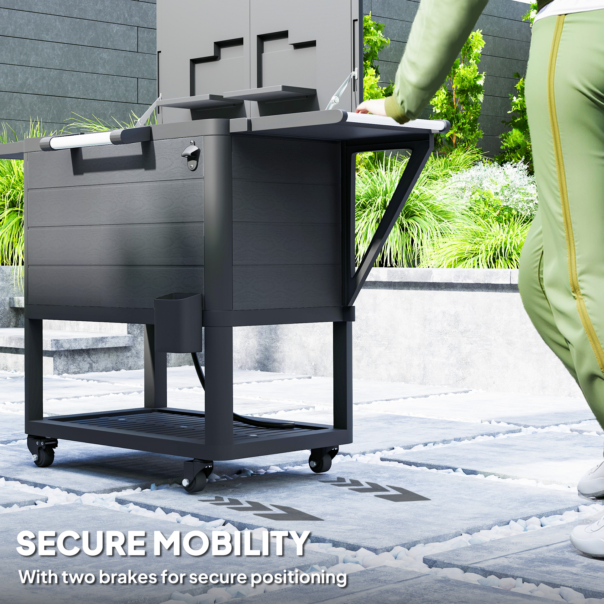 104 Quart Large Capacity Outdoor Cooler Cart, Patio Rolling Ice Chest with Bottle Opener Shelves Wheels, Black