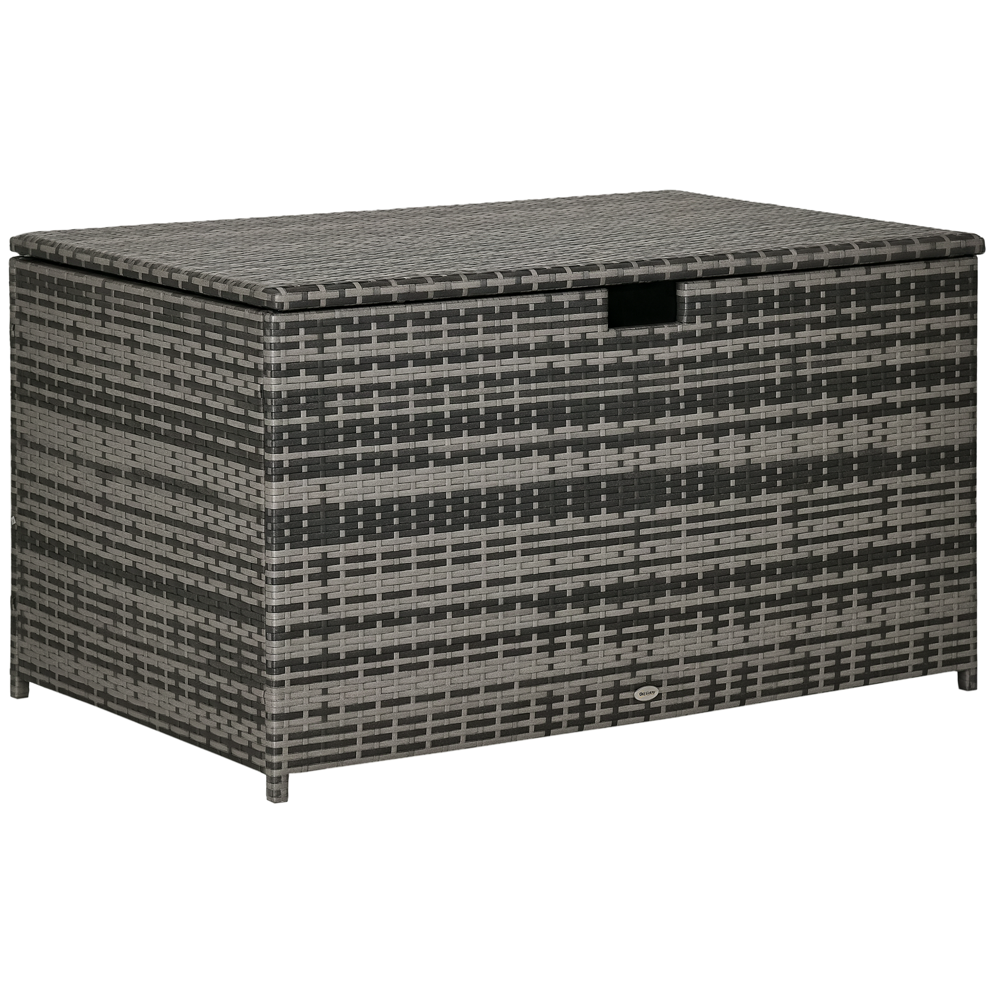 113-gallon pool trunk with waterproof liner from [BRAND NAME] is a solution for keeping your tools, or other accessories dry and clean. A safe and swift pneumatic bar lift mechanism, access your belongings has never been simpler. Handwoven PE rattan wrapped on the steel frame, adds a touch of classic aesthetics while offering enhanced water resistance. Whether you place it on your porch, patio, balcony, or poolside, the [BRAND NAME] wicker storage chest is the great choice for outdoor storage.