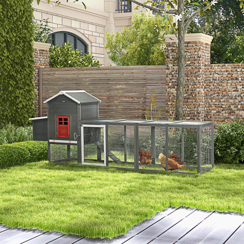 118" Extra Large Chicken Coop with Asphalt Roof, Wooden Hen Run with Slide-Out Tray and Nesting Box, Chicken Hutch for 3-6 Chickens, Gray