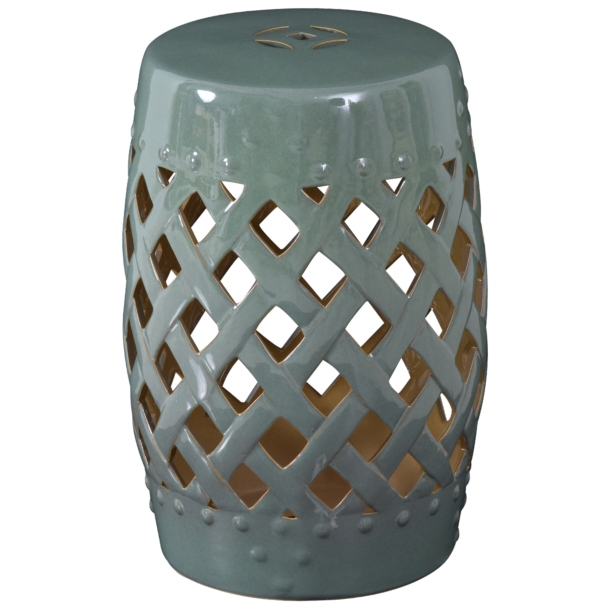 13" x 18" Ceramic Garden Stool with Woven Lattice Design & Glazed Strong Materials Decorative Outdoor Stool, Green
