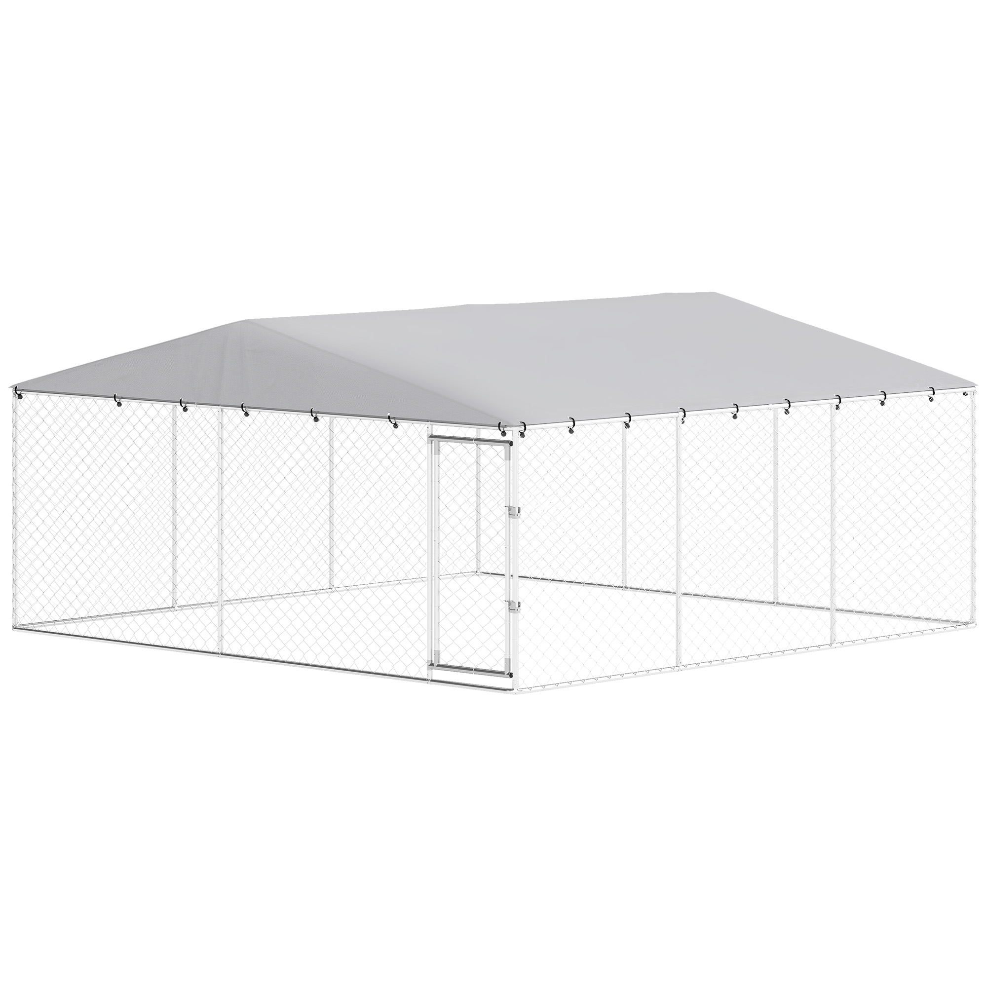 15' x 15' x 7' Dog Kennel Outdoor for Small Medium Large Dogs with Waterproof Roof, Silver
