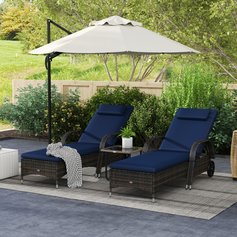 [BRAND NAME] offers a patio lounger that's so comfortable that your tanning session may just become a nap. The chaise lounge chairs on wheels offer space for you and a friend. Roll them in, select from four backrest angles, or lay down flat. The pool lounge chair is fully cushioned, with armrests and a pillow. Each piece is hand-woven, offering tropical charm with a water-safe build. Get out, get comfy, get [BRAND NAME].