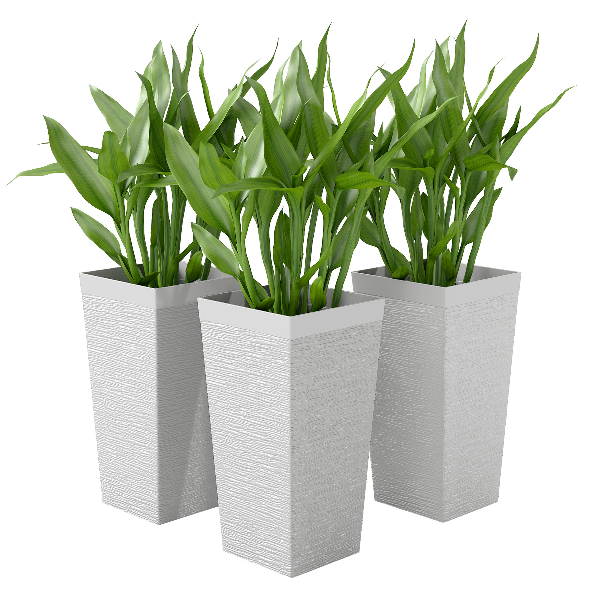 With the [BRAND NAME] planter boxes outdoor, you can arrange this three-piece set to craft a professional, harmonious display. These can help you to create a cohesive and stylish look for your patio or balcony. These elegant plastic plant pots, featuring a modern stone finish and efficient drainage, bring both sophisticated style and joyful planting moments to your home, indoors or out.