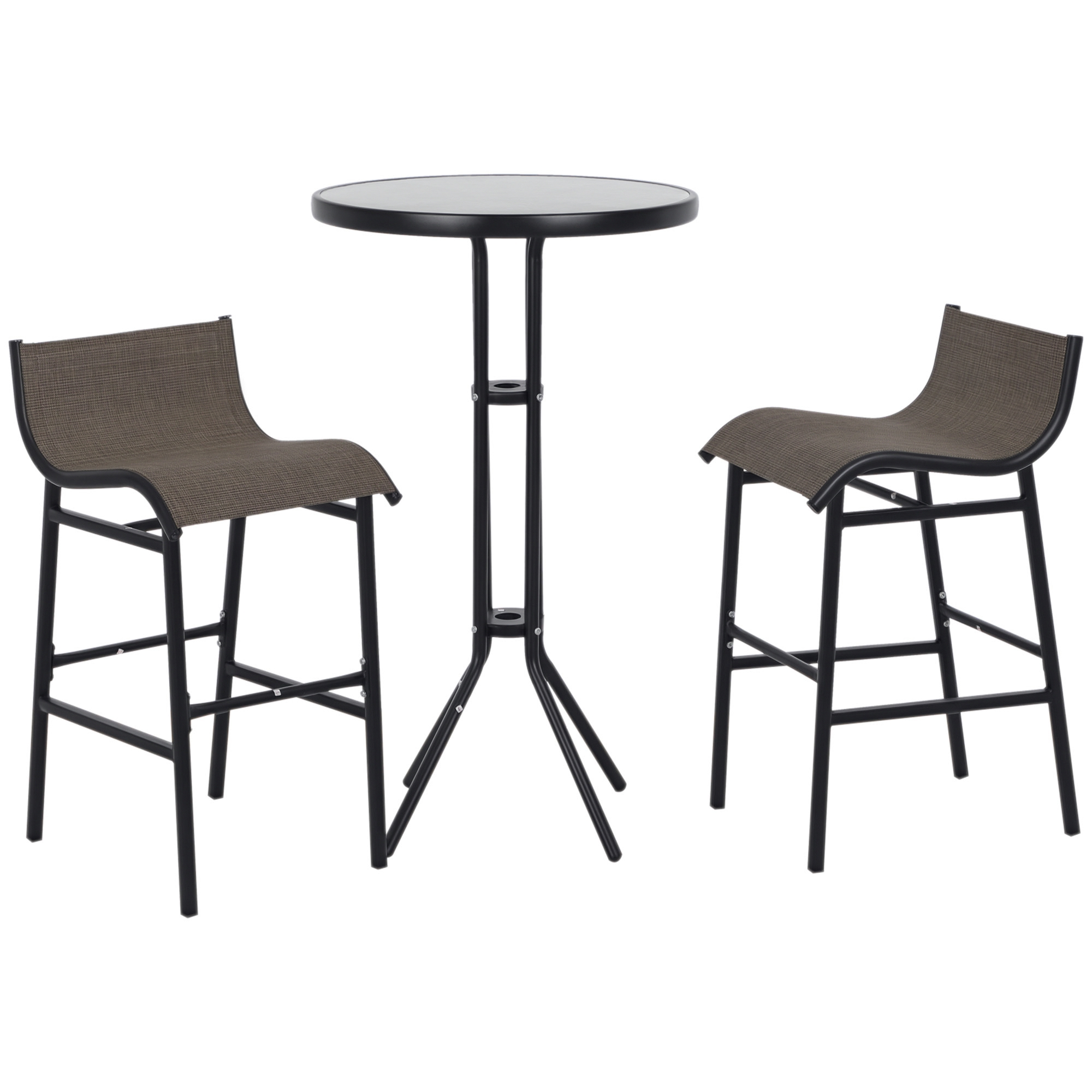 Enhance your outdoor dining experience, even in limited spaces, with the [BRAND NAME] 3 piece outdoor bistro table dining set. Designed to optimize smaller areas, this set is great for outdoor use thanks to its tough materials that withstand the elements. The space-saving circular table with a tempered glass top comes with two matching mesh fabric chairs. Don't let space constraints hinder your enjoyment of outdoor meals. Order your new favorite outdoor bistro dining set from [BRAND NAME] today!
