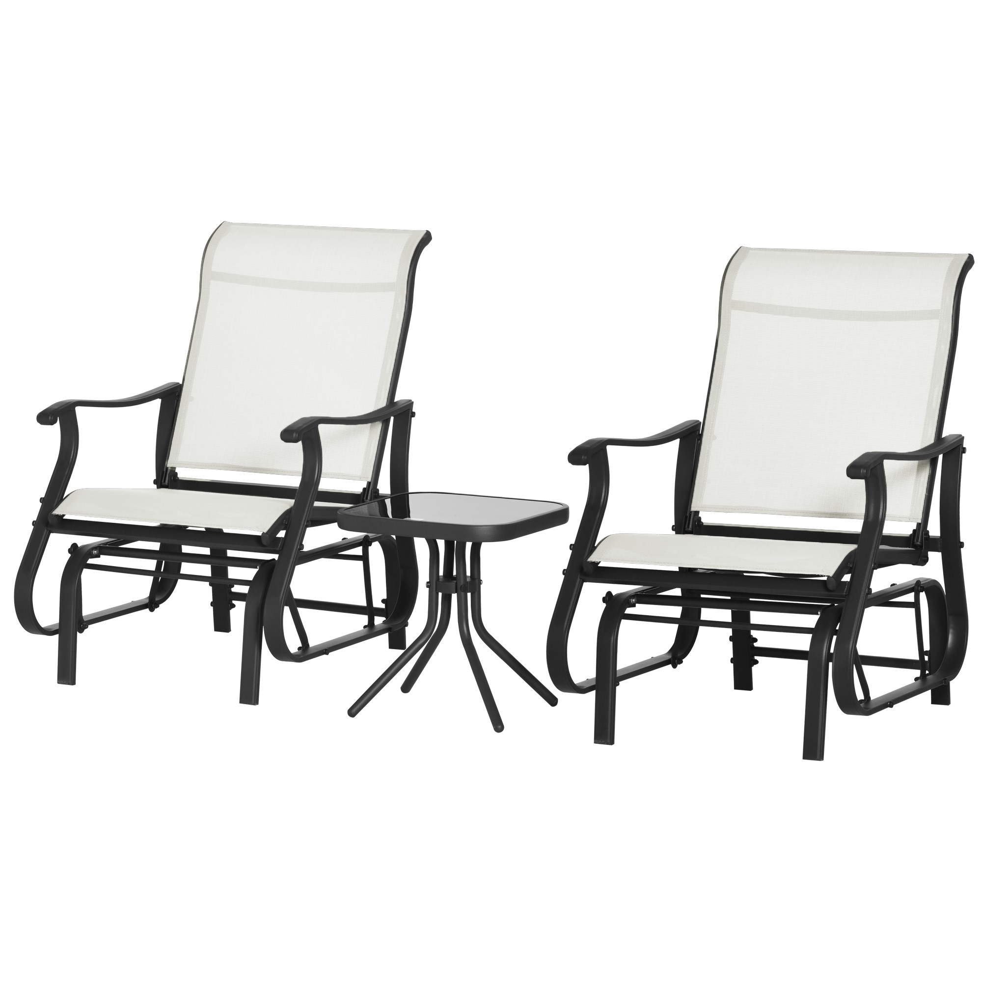 3-Piece Outdoor Gliders Set Bistro Set with Steel Frame, Tempered Glass Top Table for Patio, Garden, Backyard, Lawn, Cream White