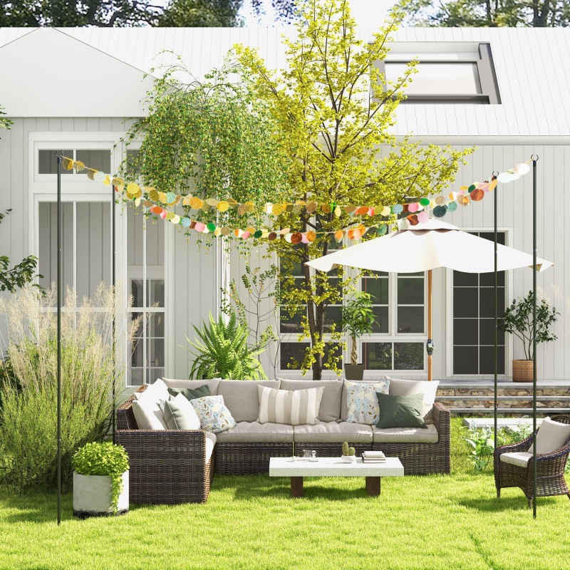 4 Pack of 10' String Light Poles, Steel Hanging Lighting Stand for Patio, Backyard, Deck, Wedding, Party, Black