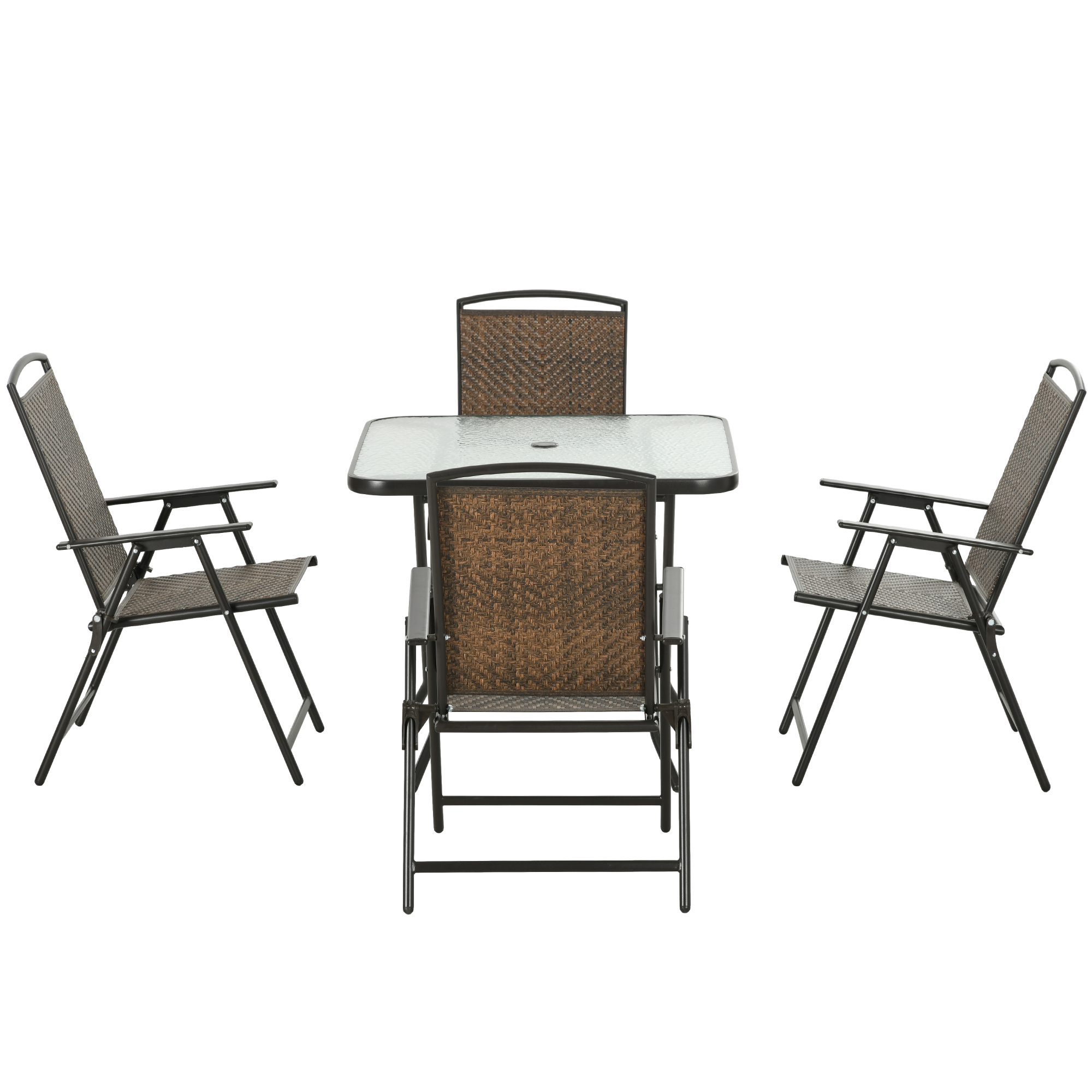5 Pieces Patio Table and Chairs, Foldable Wicker Outdoor Dining Table Set with Umbrella Hole, Dark Brown