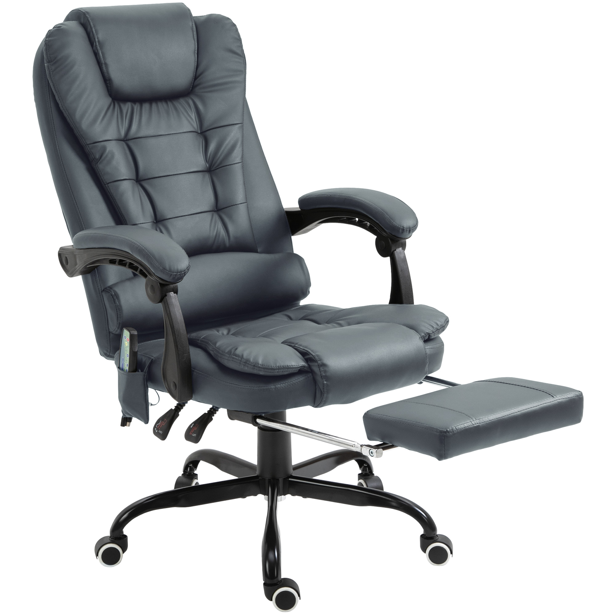 Sit back, relax, and let [BRAND NAME]'s computer desk chair do the rest. This office chair offers seven vibration nodes along the back and seat to relieve back pain during the day. The adjustable height, recline angle, and retractable footrest make your sitting comfortable as needed. Back support and padded armrests, seats, and headrests offer relaxation for long work days. Get the most out of your productivity while vibrating back pain away with this home office chair from [BRAND NAME].