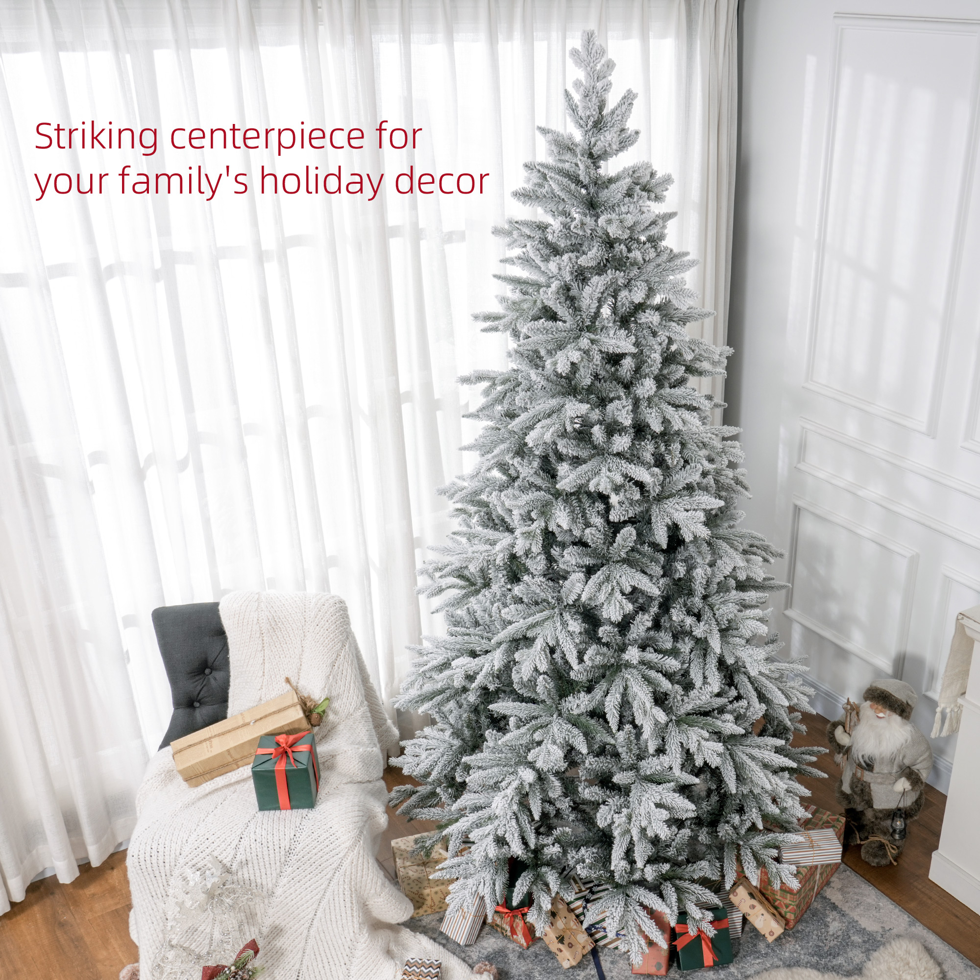 Make home a winter wonderland with [BRAND NAME]'s frosted Christmas tree. Experience the allure of a realistic Christmas tree easy-to-use attached, flame-retardant branches and a snow-flocked design. It features a stable metal base, ensuring your centerpiece won't tip when you have a full house. Make your house a holiday home with a [BRAND NAME] snow-flocked Christmas tree.