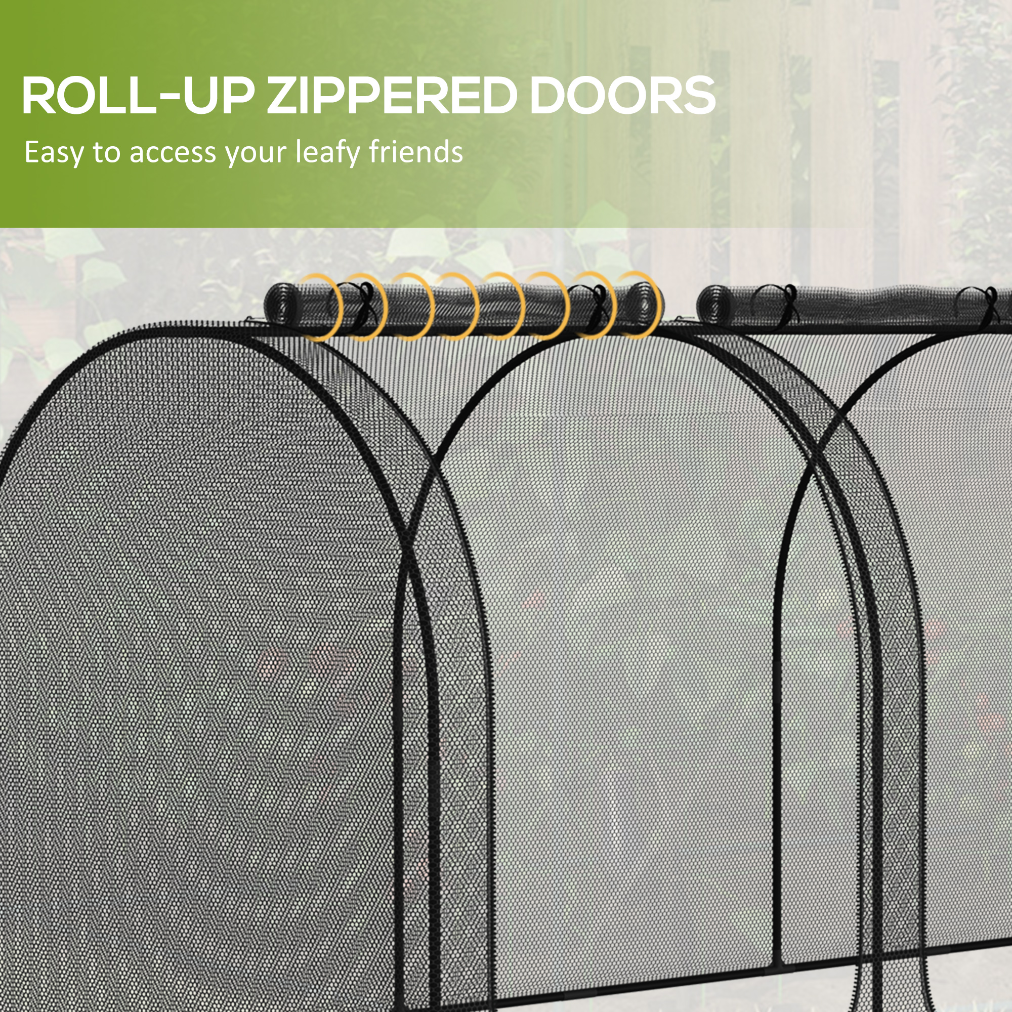 Whether you have a home garden, small farm, or orchard, our plant covers' breathable mesh netting stop birds, things that buzz, and even larger animals. Offering more protection than chicken wire, that's less invasive than a greenhouse, they let in natural light, rain, and fresh air. With three zippered doors that tie in place, picking fruits and vegetables is easy. A lightweight design and convenient carrying bag make them ready to go where you need them.
