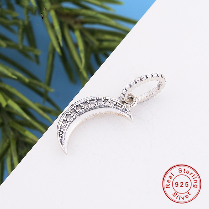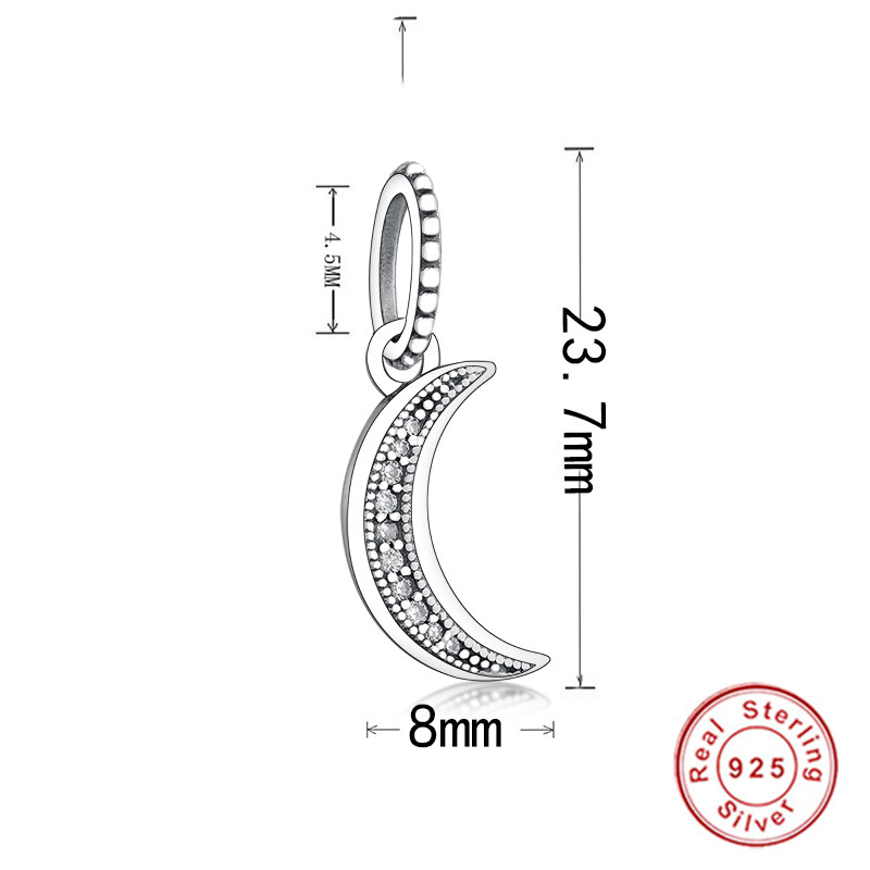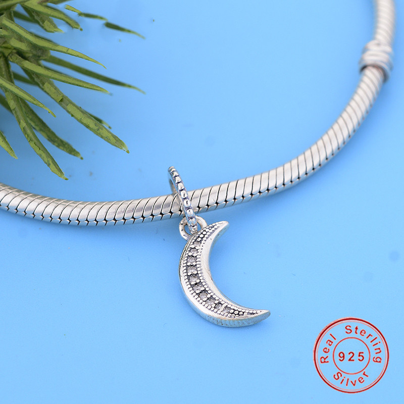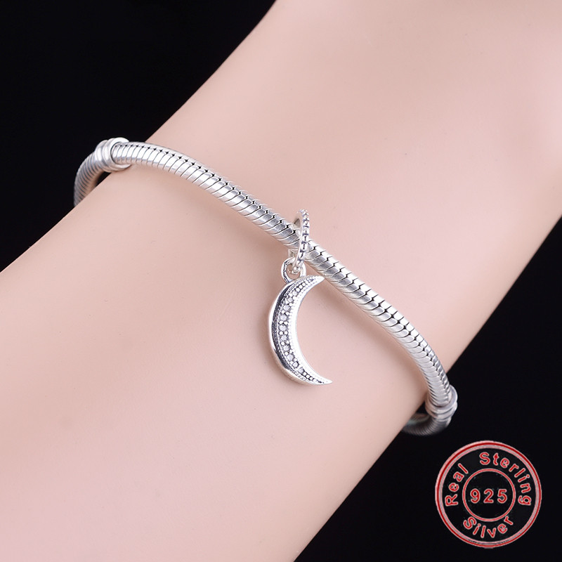 Fitx Original Pandora Charm Bracelet 925 Sterling Silver Sparkling Crescent Moon Pendant Dangle Charms Beads Jewelry Berloque