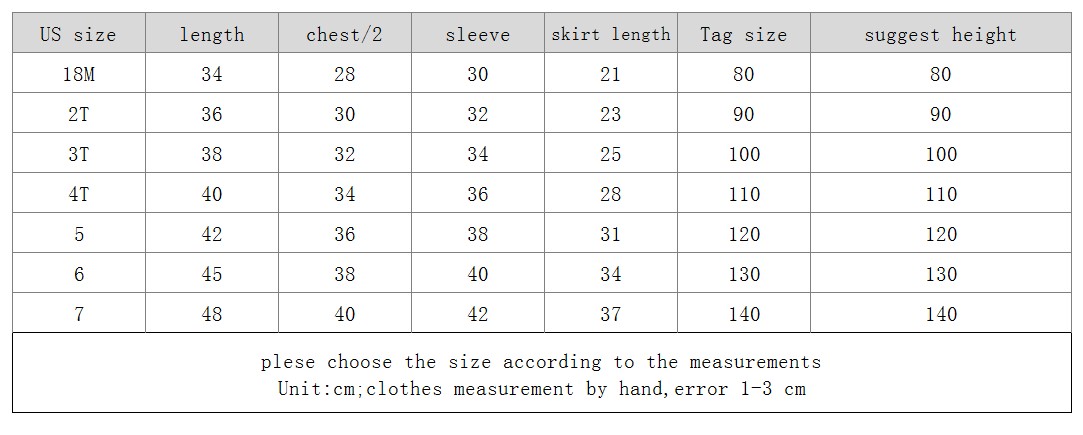 Size: 2T 3T 4T 5 6 7 18M