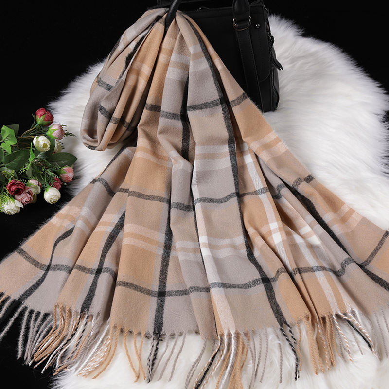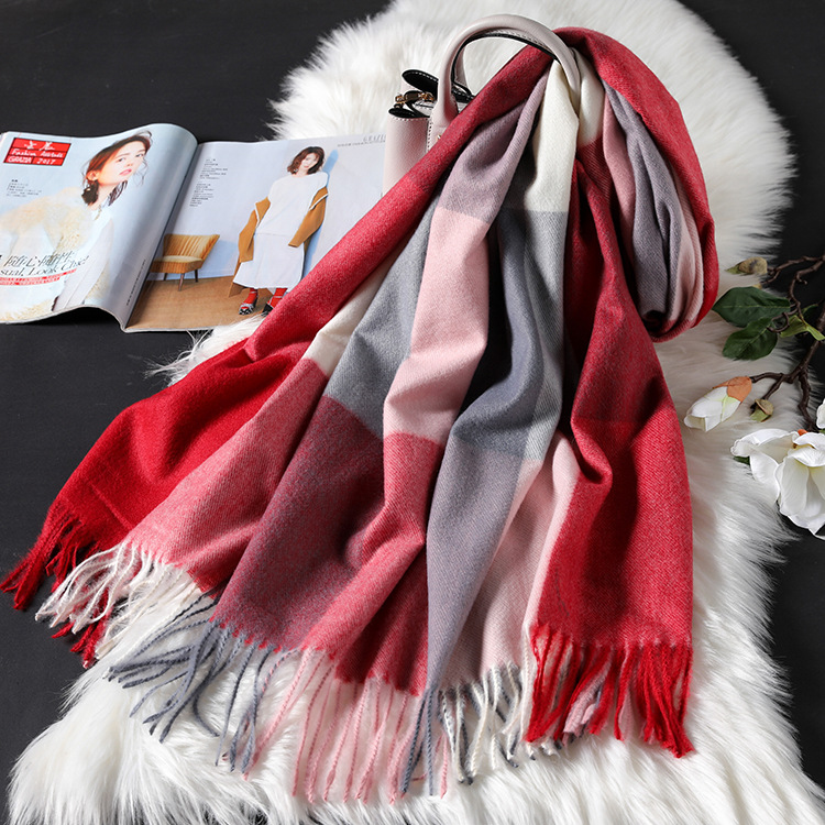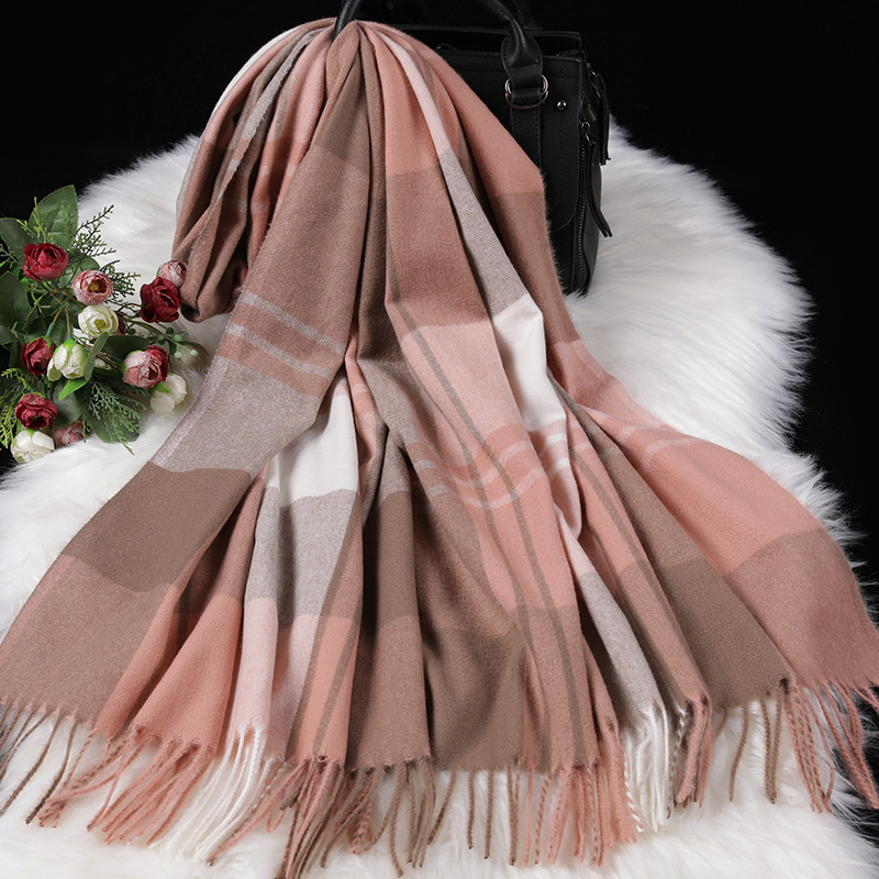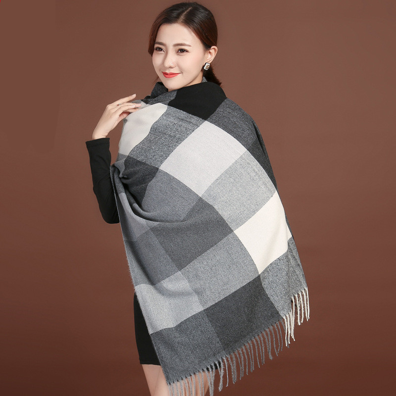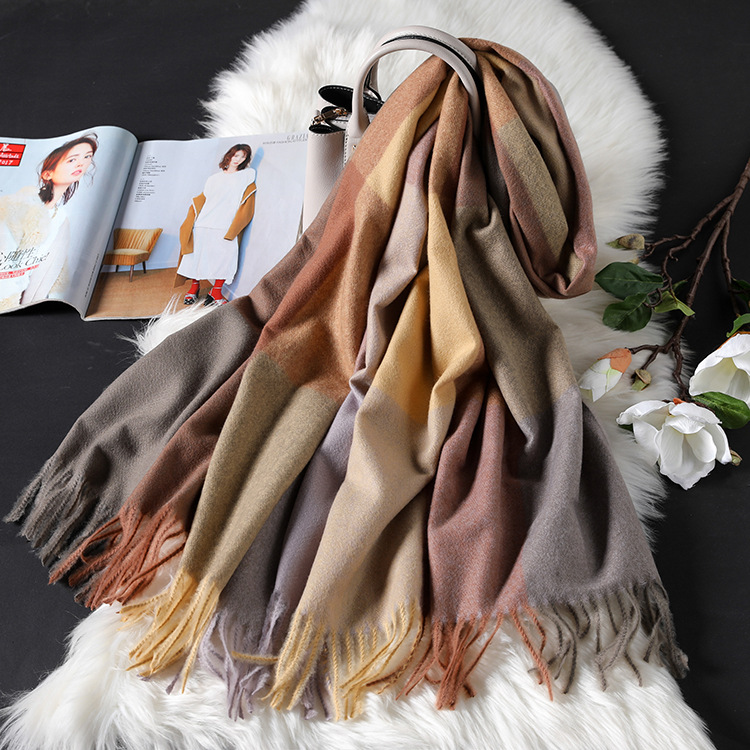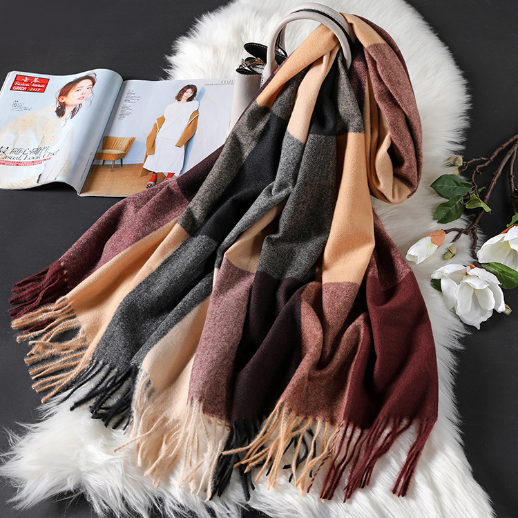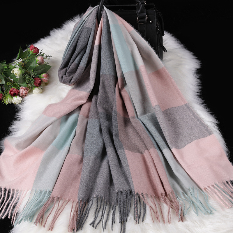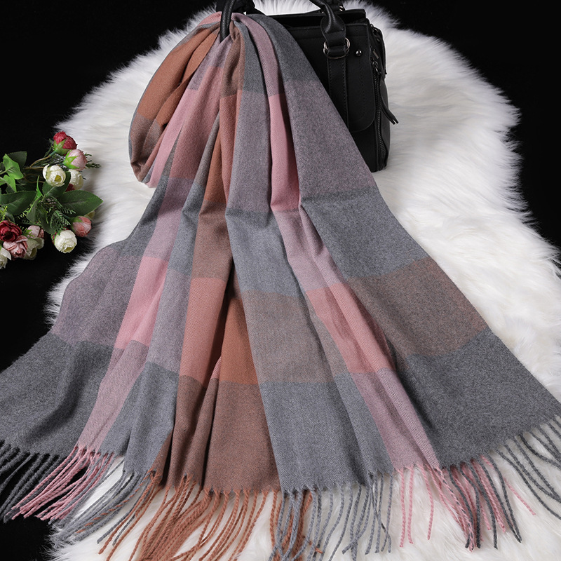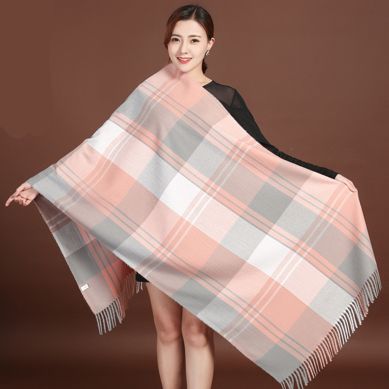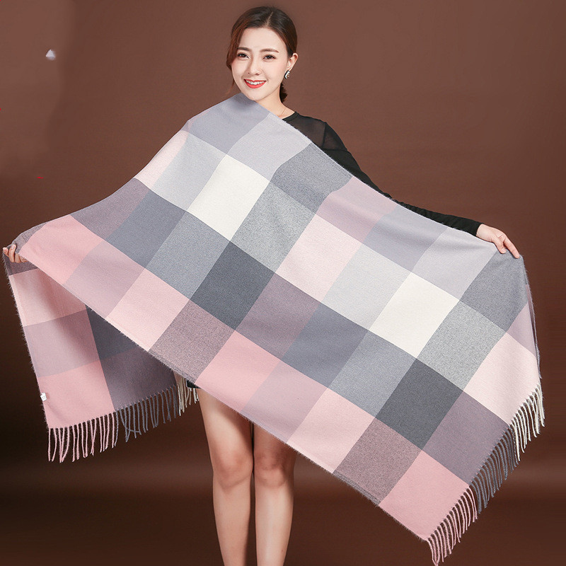 Color: navy blue large lattice-navy blue and white, pink large lattice-gray pink, white large lattice-black and white, transparent large lattice-gray pink, ginger large lattice-pink yellow, wine red large lattice-gray red, large brown Lattice—coffee gray, brown large lattice—coffee black, black lattice—black and white houndstooth lattice, off-white lattice—rice-flour houndstooth lattice, khaki lattice—khaki houndstooth lattice, lotus color lattice—pink and white twill lattice, yellow lattice— Turmeric Twill Check, Blue Check—Pink Blue Twill Check, Silver Check—Silver Grey Twill Check, Light Gray Big Check—Orange Grey, Camel Big Check—Mice Coffee, Light Blue Big Check—Blue Camel, Red Big Check—Black Red White, dark brown large grid-pink coffee color, dark gray large grid-pink dark gray, orange large grid-white orange, sky blue large grid-powder blue, chocolate large grid-gray camel, grid silk wool- Ginger yellow, grid silk wool-beige, grid silk wool-leather pink, grid silk wool-dark green, grid silk wool-black green, grid silk wool-dark gray, grid silk wool-camel, grid silk wool-red, Lattice silk wool-lotus root, lattice silk wool-flesh pink, lattice silk wool-black, striped silk wool-black apricot, striped silk wool-big red, striped silk wool-beige, striped silk wool-navy blue, army green Pearl silk wool-army green, gray Pearl silk wool-gray