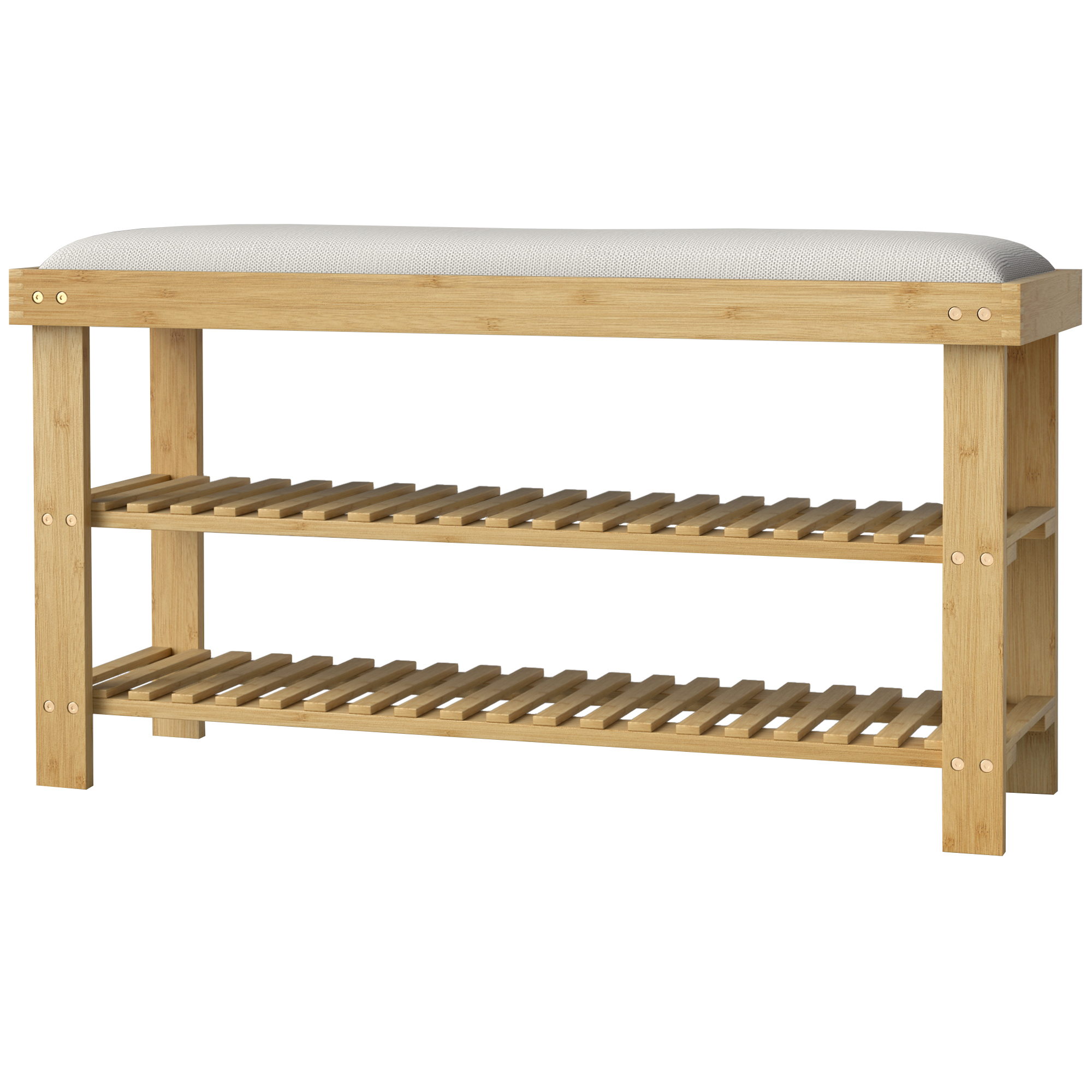 Bamboo Shoe Storage Bench, 3-Tier Entryway Bench with Cushion, Shoe Organizer for Entryway, Hallway, Cream White