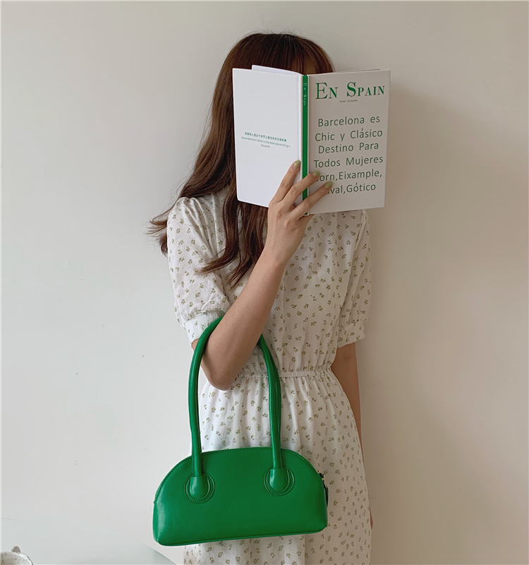 Candy Color Shell Bag Retro Oil Wax Stick Bag Versatile Long Handle Shoulder Bag Armpit Bag Casual Boston Bag
