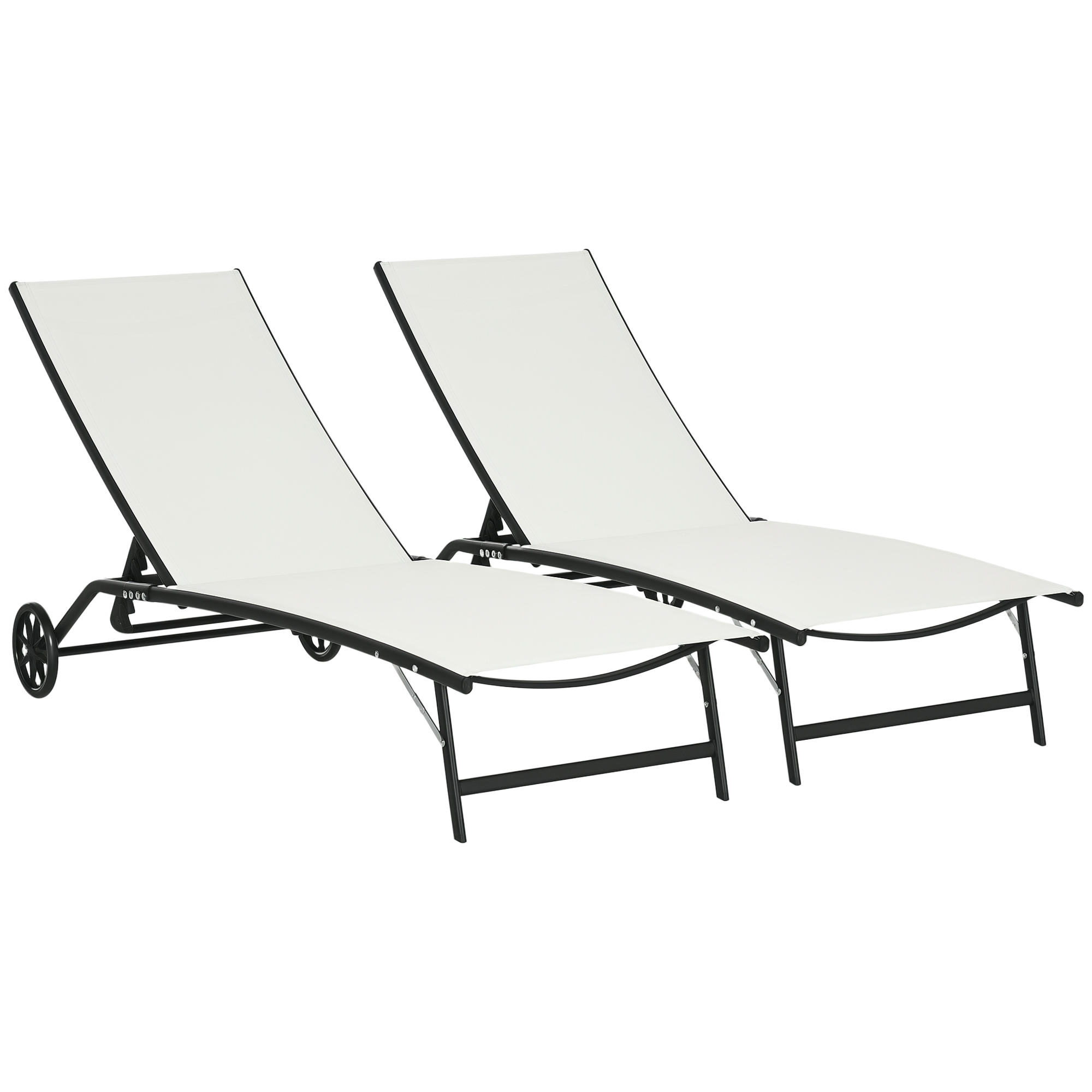 Soak up the summer sun with a friend and [BRAND NAME]. [BRAND NAME] has a two-piece outdoor lounge chair set that adds instant tanning space to your pool. Recline to five positions, including flat, and find your favorite tanning angle. Pool water is no match for our outdoor chaise chairs' powder-coated frames. They're lightweight and can be wheeled wherever you want them. A mesh surface makes our pool chairs cool chairs with pleasant airflow and a quick-drying design. Get out, get comfy, get [BRAND NAME].