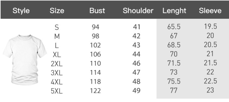 Size S, M, L, XL, XXL, XXXL, XXXXL, 5XL