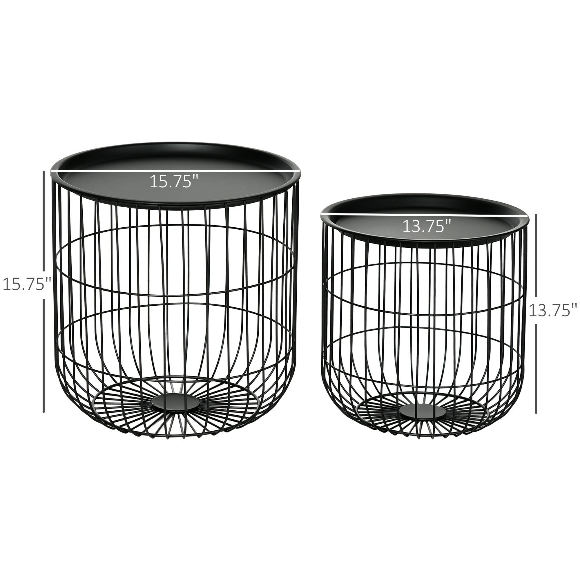 Accommodate a small apartment or a large living room that has sudden guests. The [BRAND NAME] nesting coffee table set offers two tables that can take up half as much space. They have a sleek wipe-clean surface with a lip to keep up to 22 lbs. of items in place. Designed with a steel wire bird-cage-like look, both the large and small stacking tables can be used as extra storage when they aren't stacked. Enjoy nearby storage for pillows, books, and blankets. Make your house a home with [BRAND NAME].