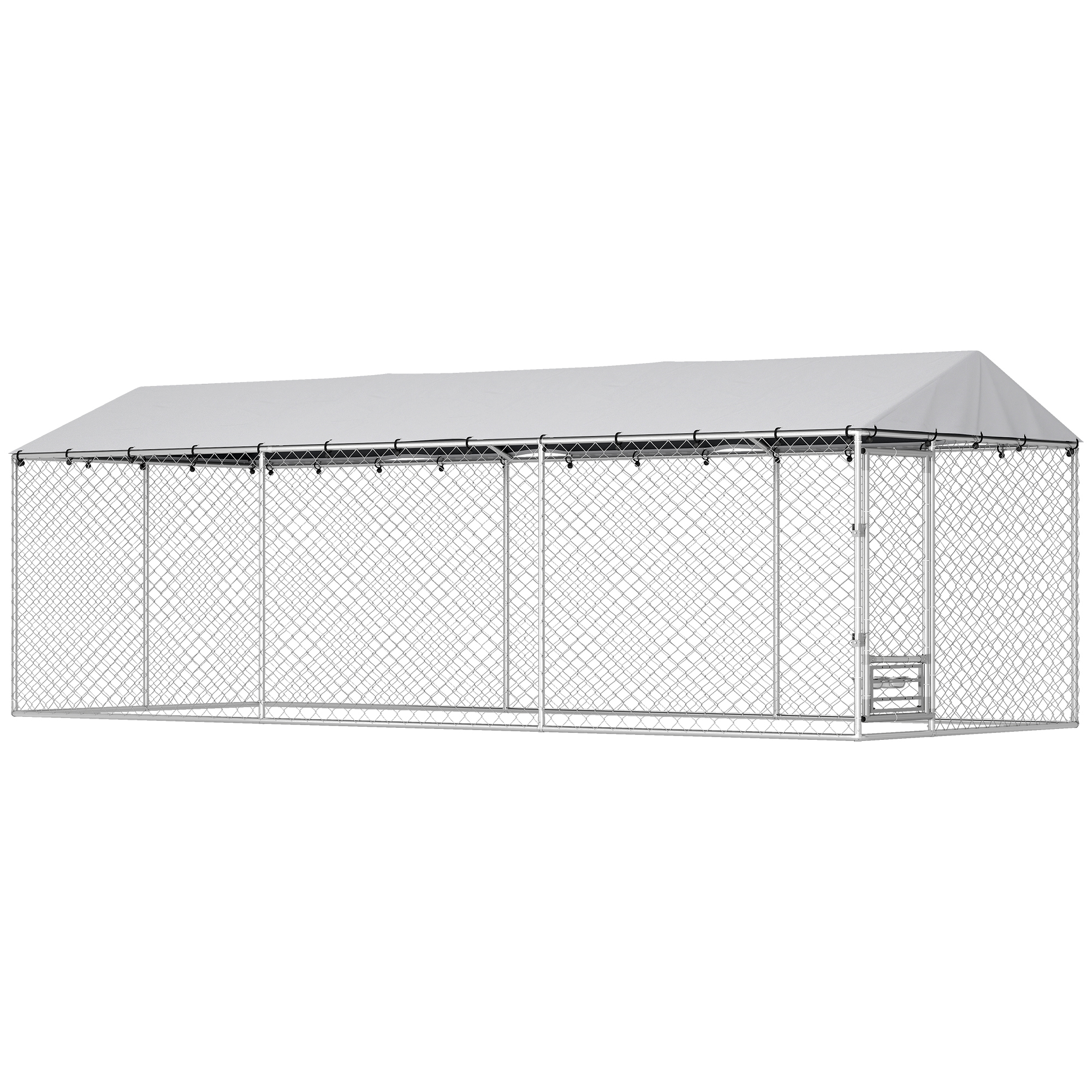 Does your active dog need more outdoor freedom but you worry about their safety in a large yard? The constant fear of an escape can be stressful. The [BRAND NAME] outdoor dog kennel provides a secure 149 sq.ft haven with its dual-lock gate and robust steel frame. Mealtime is simplified with a unique rotating feeder allowing you to feed your pet from the outside. This outdoor dog kennel ensures a safe and convenient space
