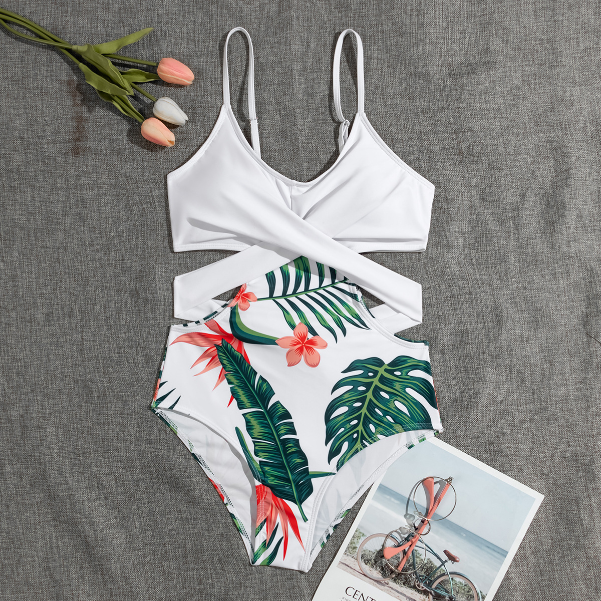 European And American Bikini Swimsuit Bikini Digital Print Cross Sexy Slim Swimsuit