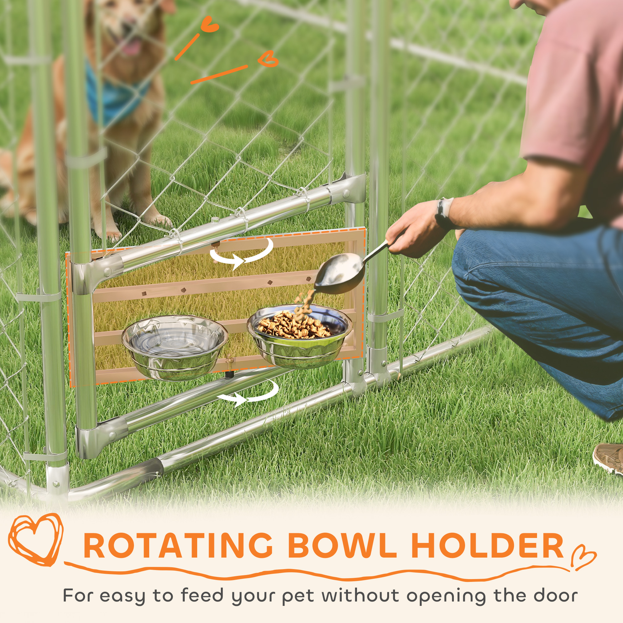Discover the [BRAND NAME] Outdoor Dog Kennel, a spacious 99-square-foot haven with a strong 1.3" galvanized steel frame and secure mesh grid. It has a waterproof roof covering both the resting area and a basking area for them to play and roam, so it's a great retreat for medium to large-sized dogs up to 66 lbs. Enjoy peace of mind and a happy, safe pet in this versatile outdoor dog run