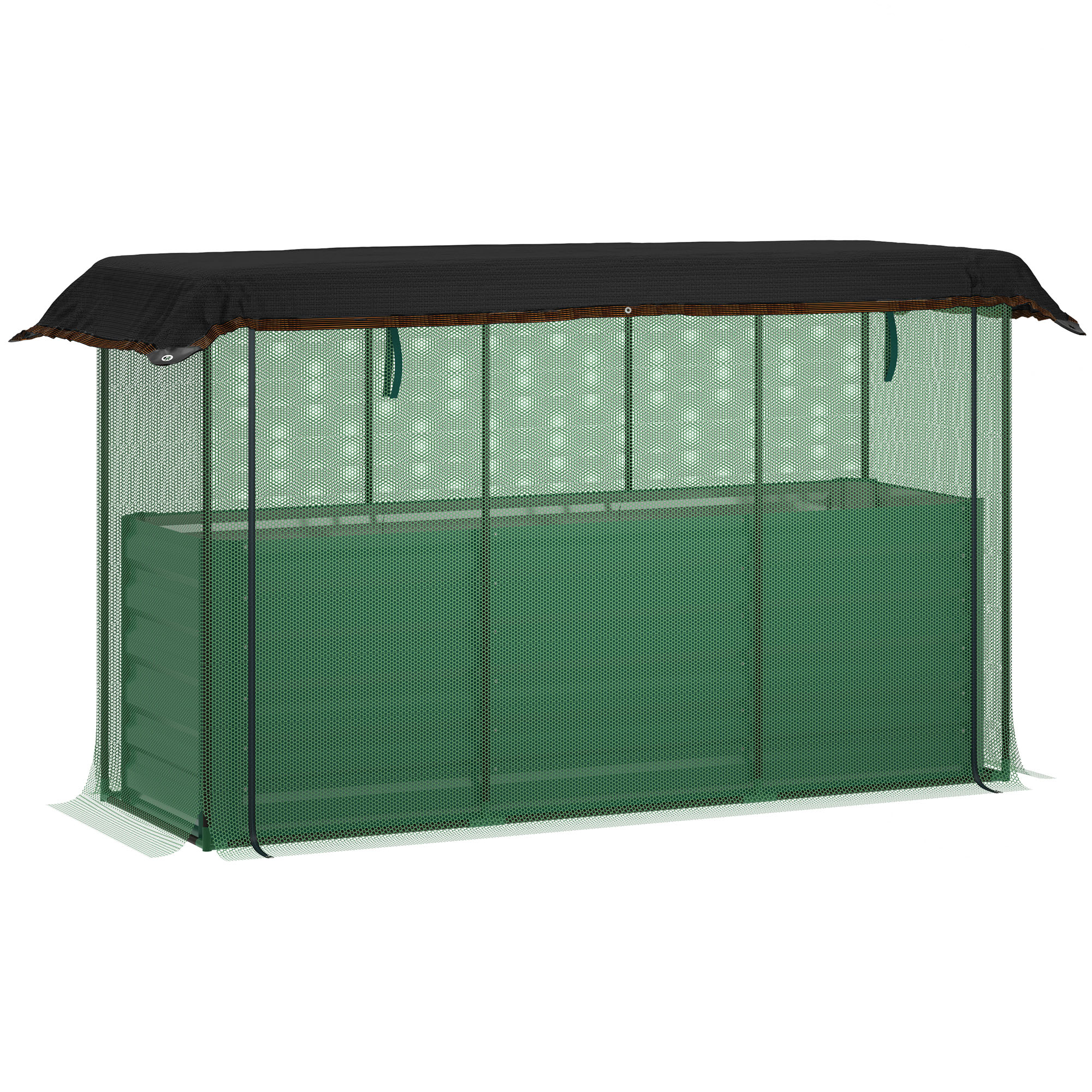 Galvanized Steel Planter Box with Crop Cage and Shade Cloth, Raised Garden Bed for Flowers, Veggies and Herbs, Green