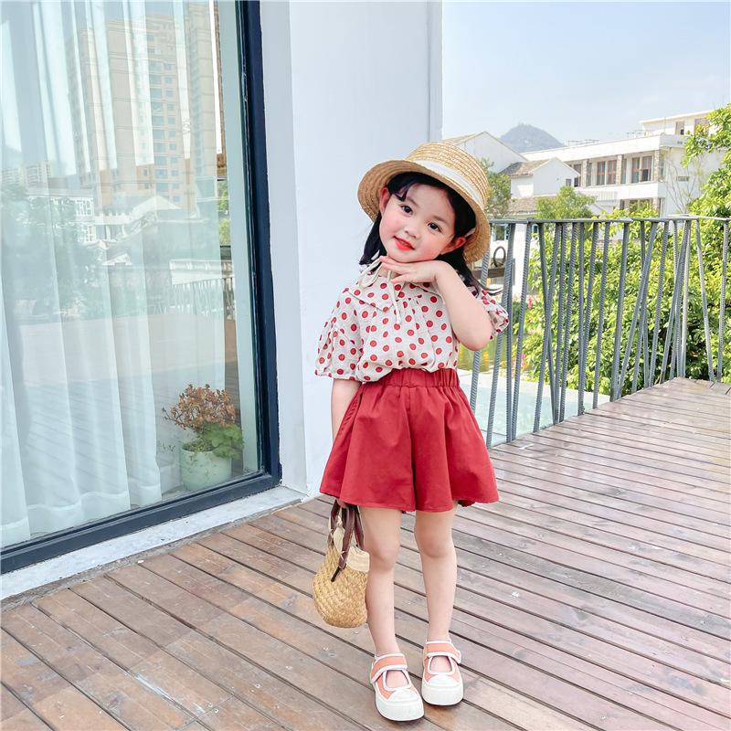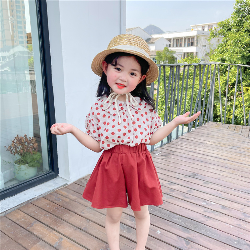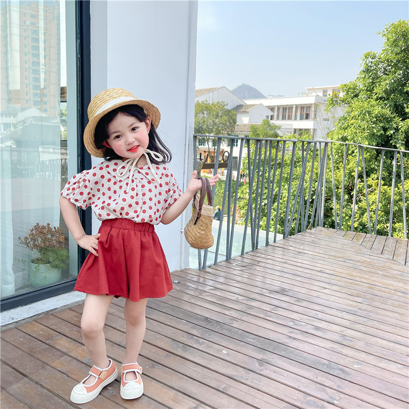 Color: DM1173032-dot doll collar shirt + red skirt pants suit