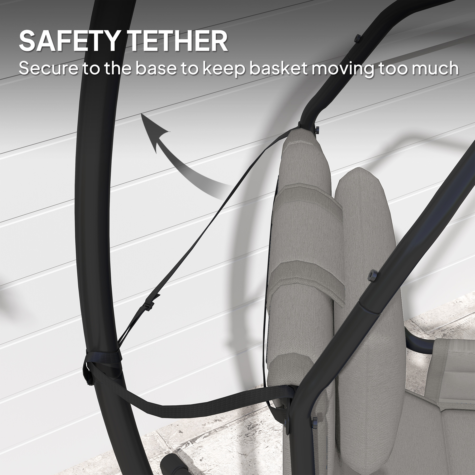 • - Tether secures seat basket for less excessive movement